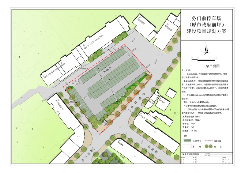 、區位及現狀:本項目位于原市政府前坪,場地現狀為室外停車場。