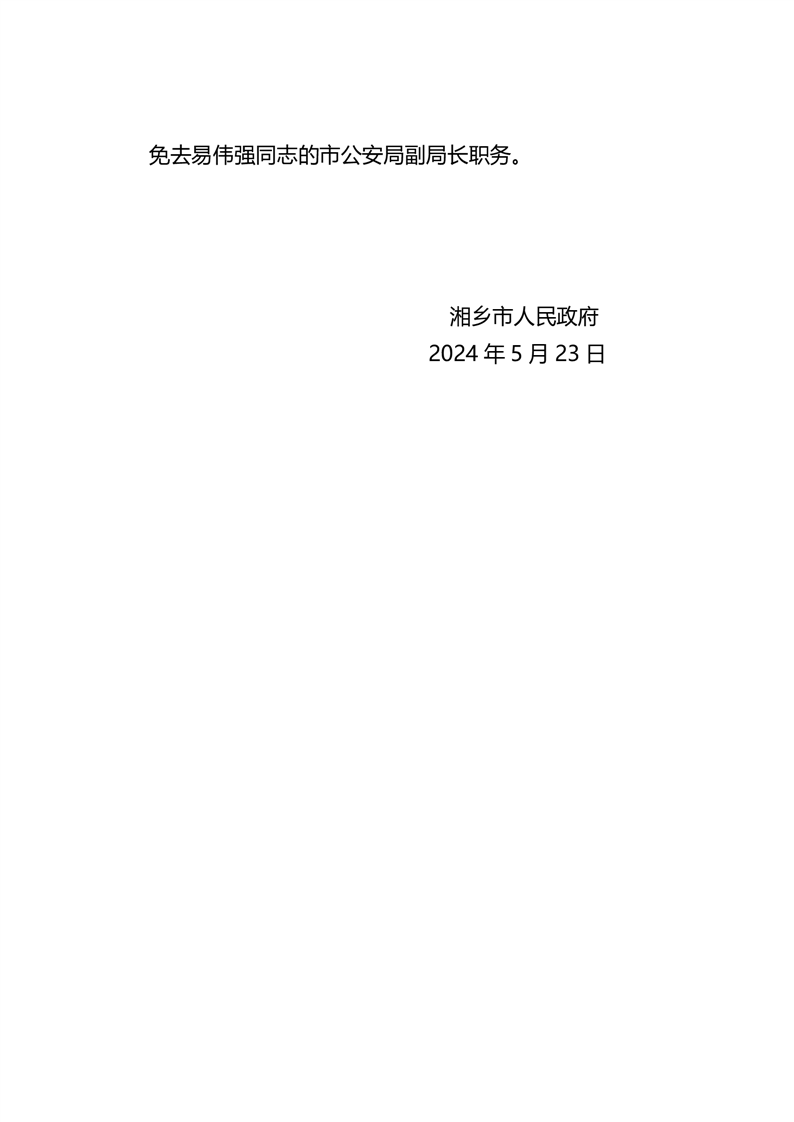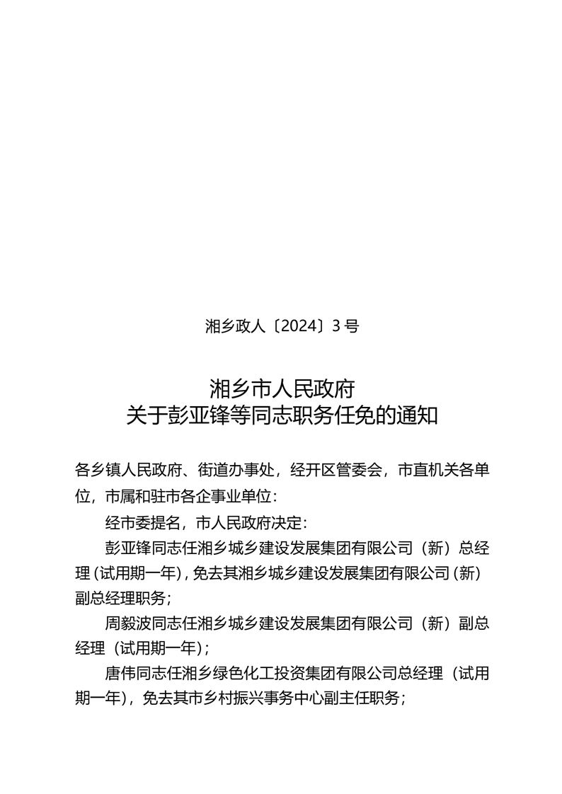 湘鄉政人〔2024〕3號 關于彭亞鋒等同志職務任免的通知