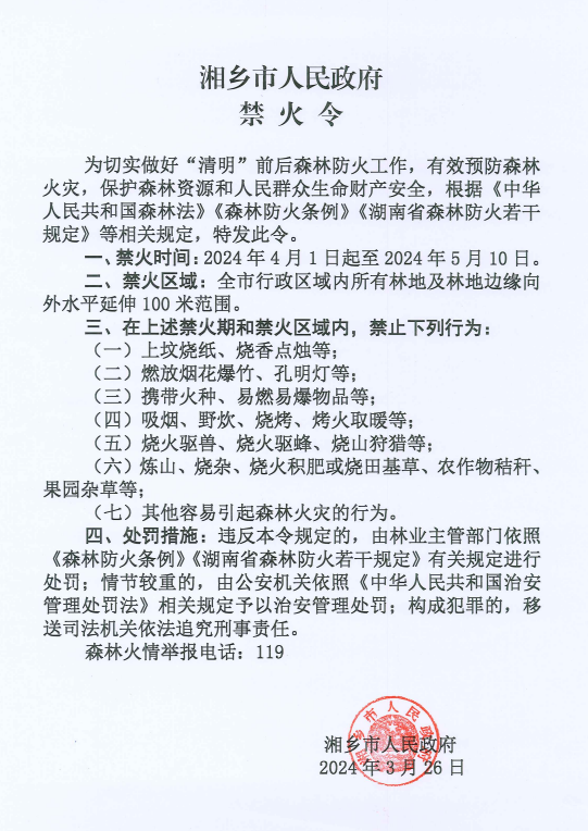 湘鄉(xiāng)市人民政府禁火令