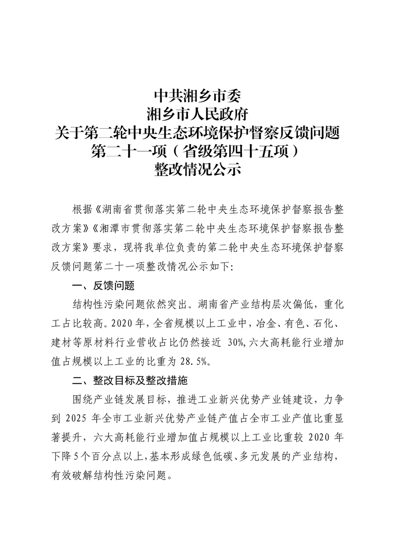 關于第二輪中央生態環境保護督察反饋問題第二十一項(省級第四十五項) 整改情況公示