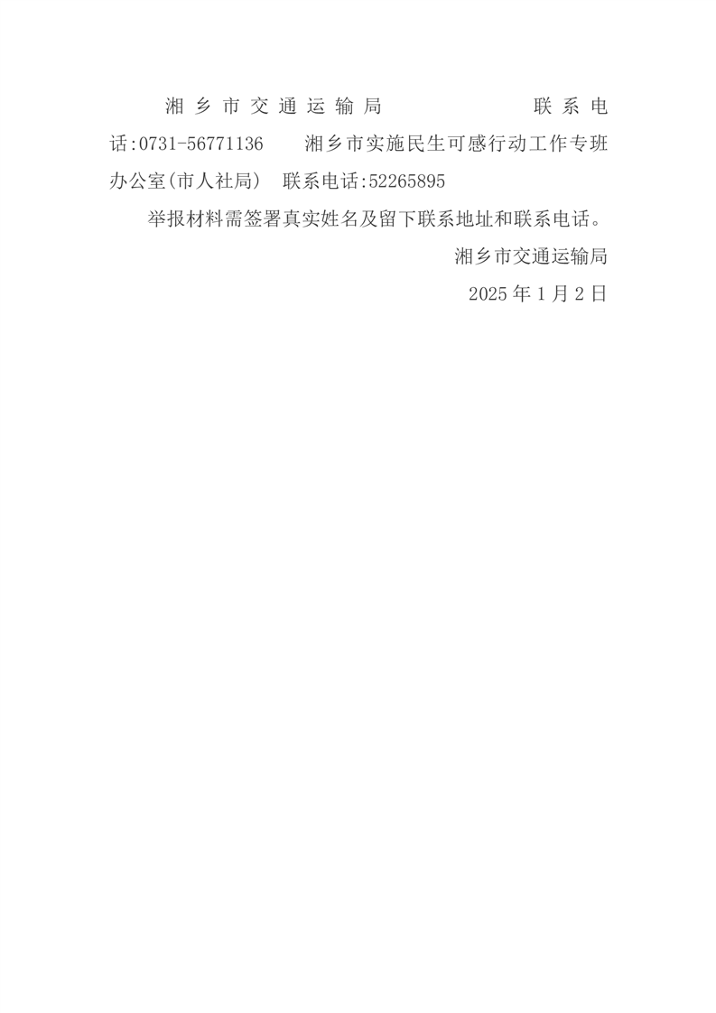 湘鄉市交通運輸局2024年重點民生項目任務完成情況的公示