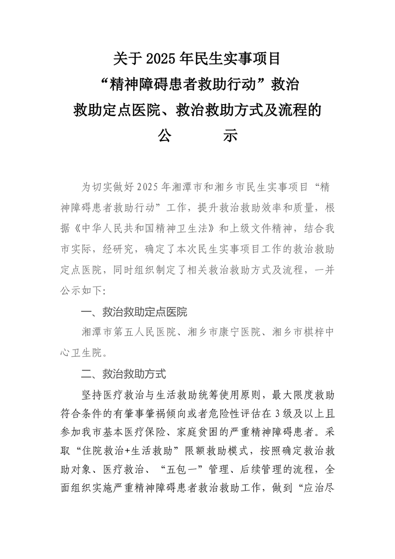 湘鄉市衛生健康局落實2025年度民生實事項目的公示