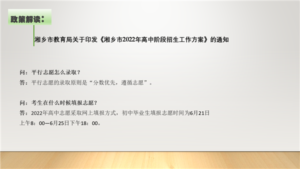 【政策圖解】《湘鄉(xiāng)市教育局關(guān)于印發(fā)湘鄉(xiāng)市2022年高中階段招生工作方案的通知》