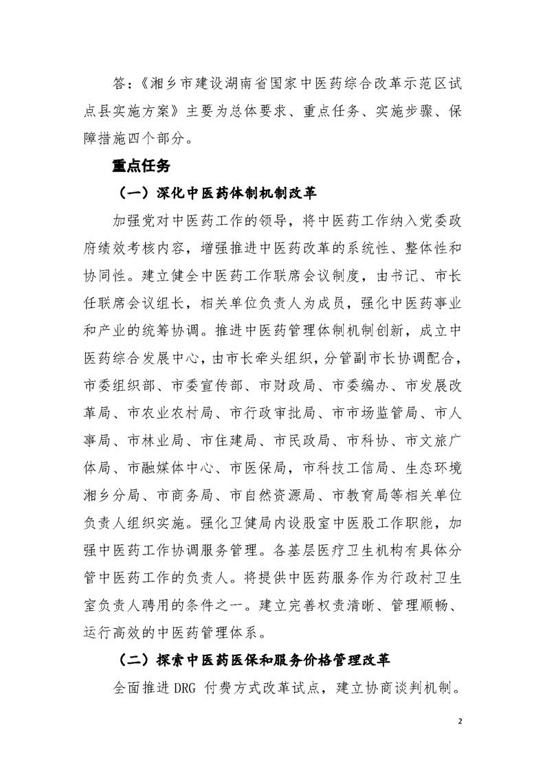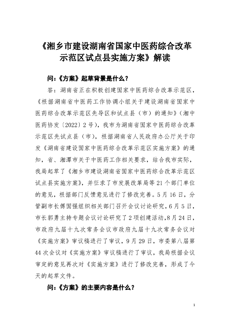 【政策問答】《湘鄉市建設湖南省國家中醫藥綜合改革示范區試點縣實施方案》解讀