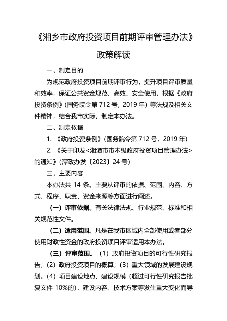 【部門(mén)解讀】關(guān)于印發(fā)《湘鄉(xiāng)市政府投資項(xiàng)目前期評(píng)審管理辦法》的通知