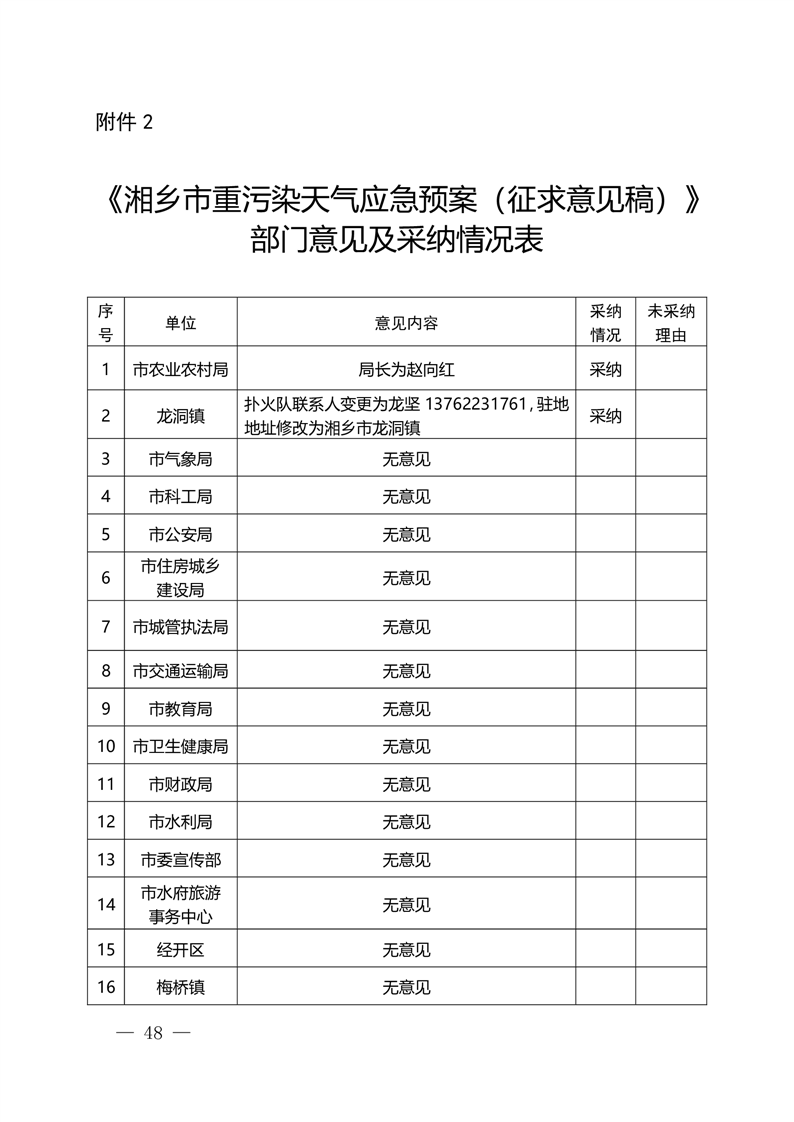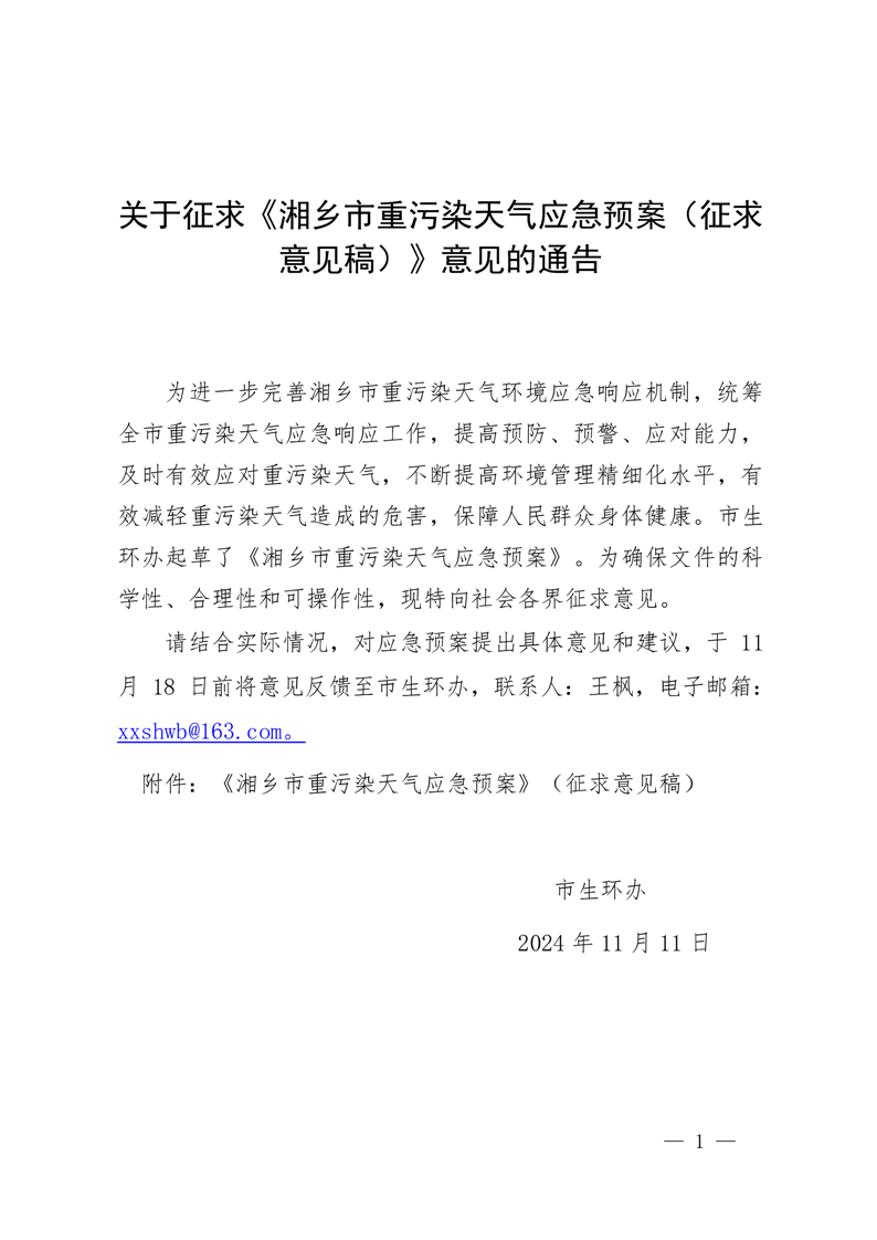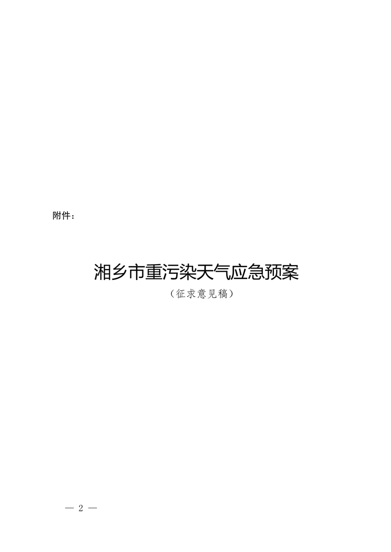關(guān)于征求《湘鄉(xiāng)市重污染天氣應(yīng)急預(yù)案(征求意見稿)》意見的通告