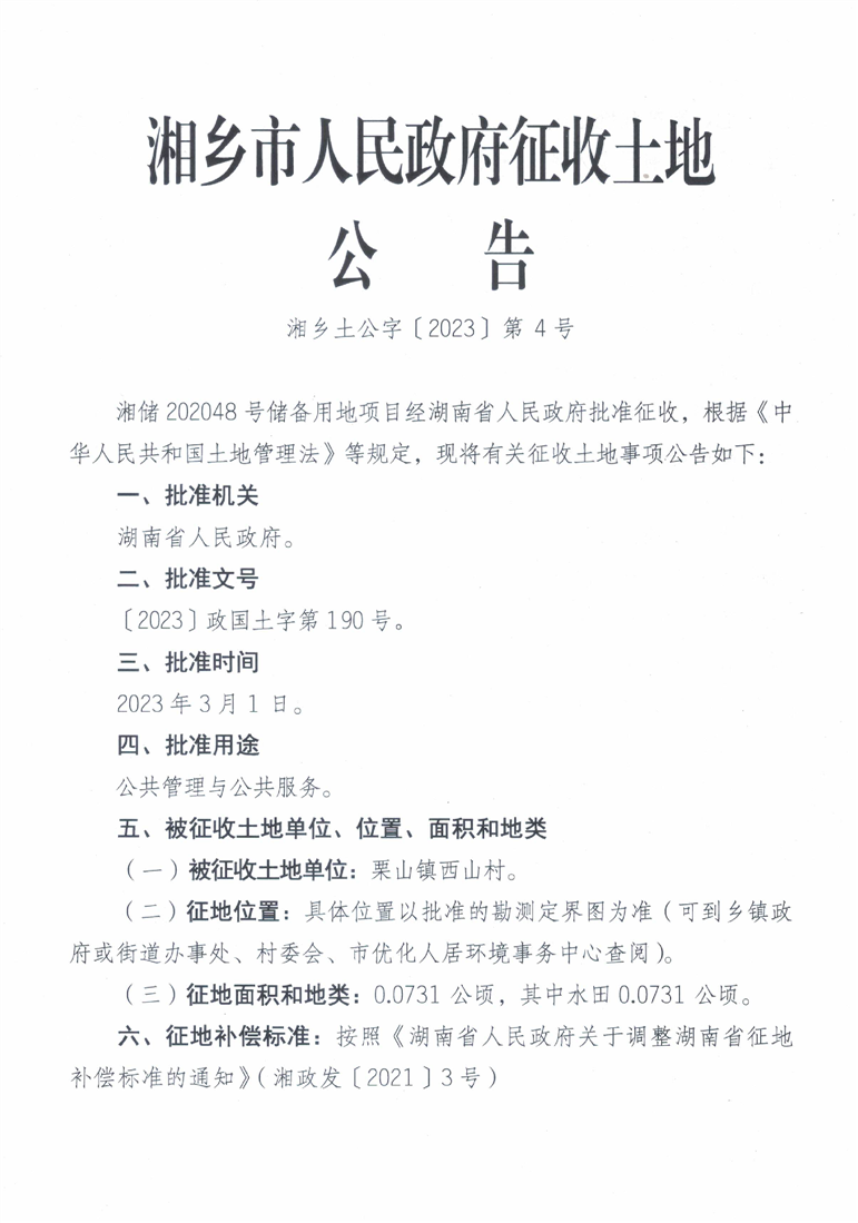湘儲202048號儲備用地項目征收土地公告
