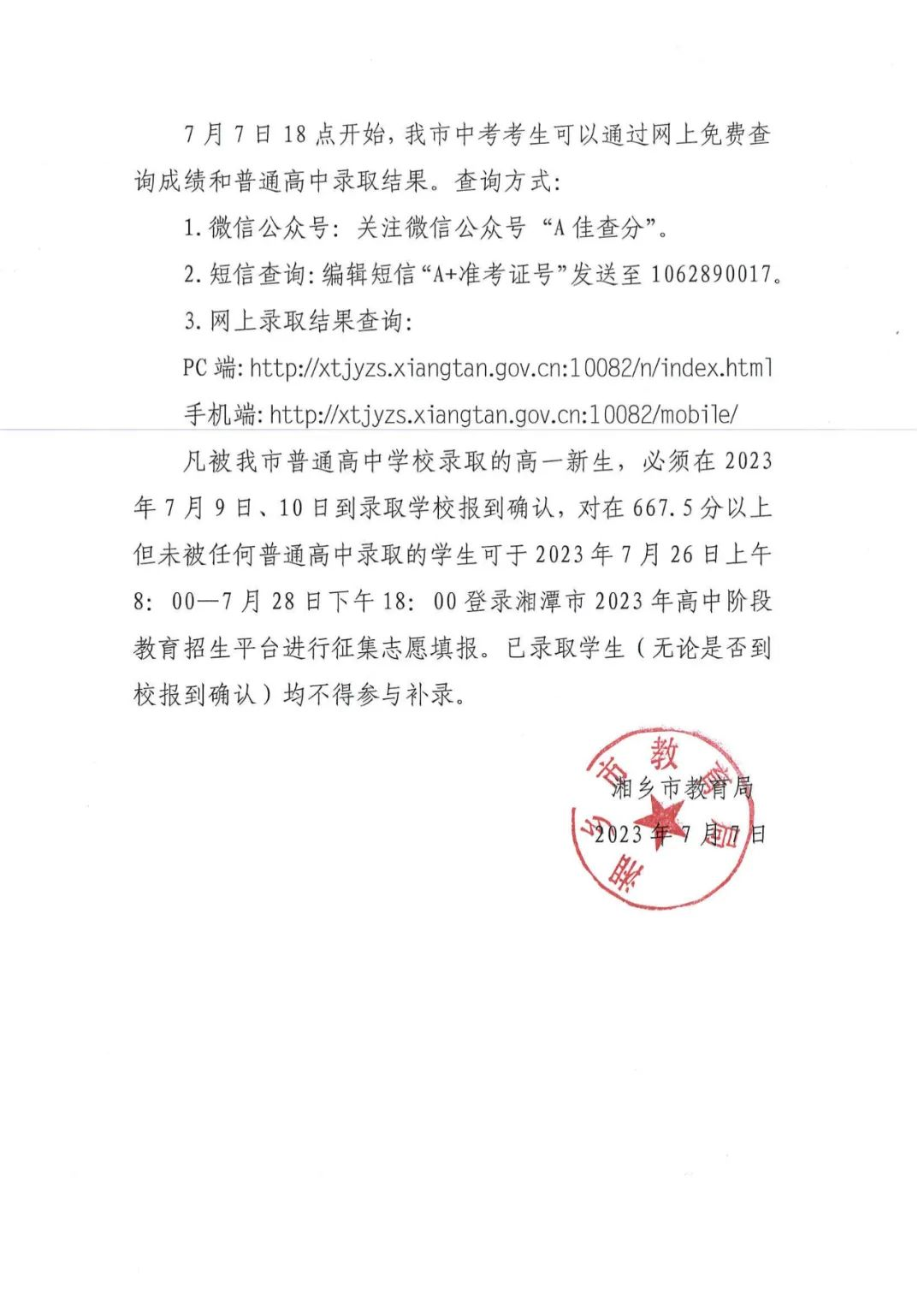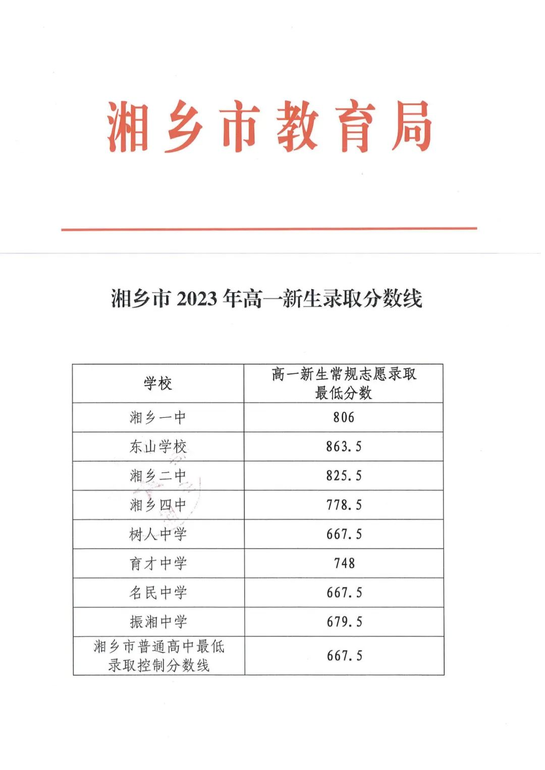 湘鄉(xiāng)市2023年高一新生錄取分?jǐn)?shù)線(xiàn)