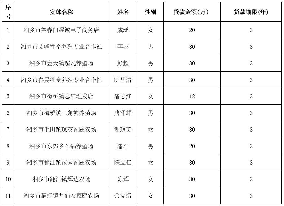 湘鄉市2024年第二批創業擔保貸款對象審核名單公示