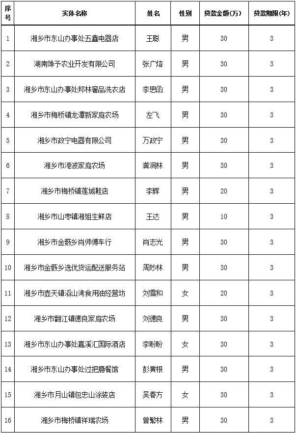 湘鄉市2025年第二批創業擔保貸款對象審核名單公示