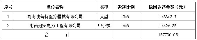 根據(jù)《湖南省人民政府辦公廳 關(guān)于貫徹促發(fā)展惠民生要求落實(shí)優(yōu)化調(diào)整穩(wěn)就業(yè)政策若干措施的通知》(湘政辦發(fā)〔2023〕32號(hào))精神,經(jīng)系統(tǒng)比對(duì),就業(yè)服務(wù)中心初審,以下2家單位符合享受穩(wěn)崗返還條件,為堅(jiān)持公開、公平、公正原則,廣泛接受社會(huì)各界監(jiān)督,現(xiàn)將相關(guān)單位及補(bǔ)貼金額公示如下。如有異議,請(qǐng)于公示期內(nèi)向我局就業(yè)服務(wù)中心如實(shí)反映。公示時(shí)間為2023年12月29日至2024年1月4日。