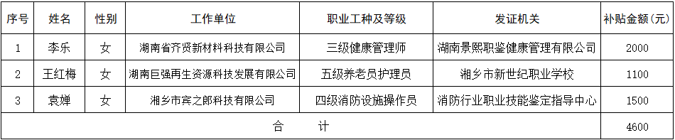 湘鄉市2024年6月失業保險技能提升補貼公示表