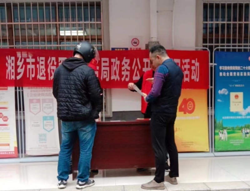 近日,湘鄉市退役軍人事務局開展政務公開主題日活動。結合《中華人民共和國政府信息公開條例》、退役軍人優待目錄內容、湘易辦app推廣使用等內容,此次活動共發放宣傳冊100余份。下一步,我局將進一步推進政務信息公開工作,努力提高基層政務信息公開標準化規范化水平。