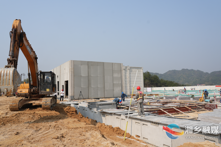 在施工現場,記者看到工人們正緊張有序地施工中,裝配式建筑施工已完成總體工程量的95%,變電站主體輪廓清晰可見。