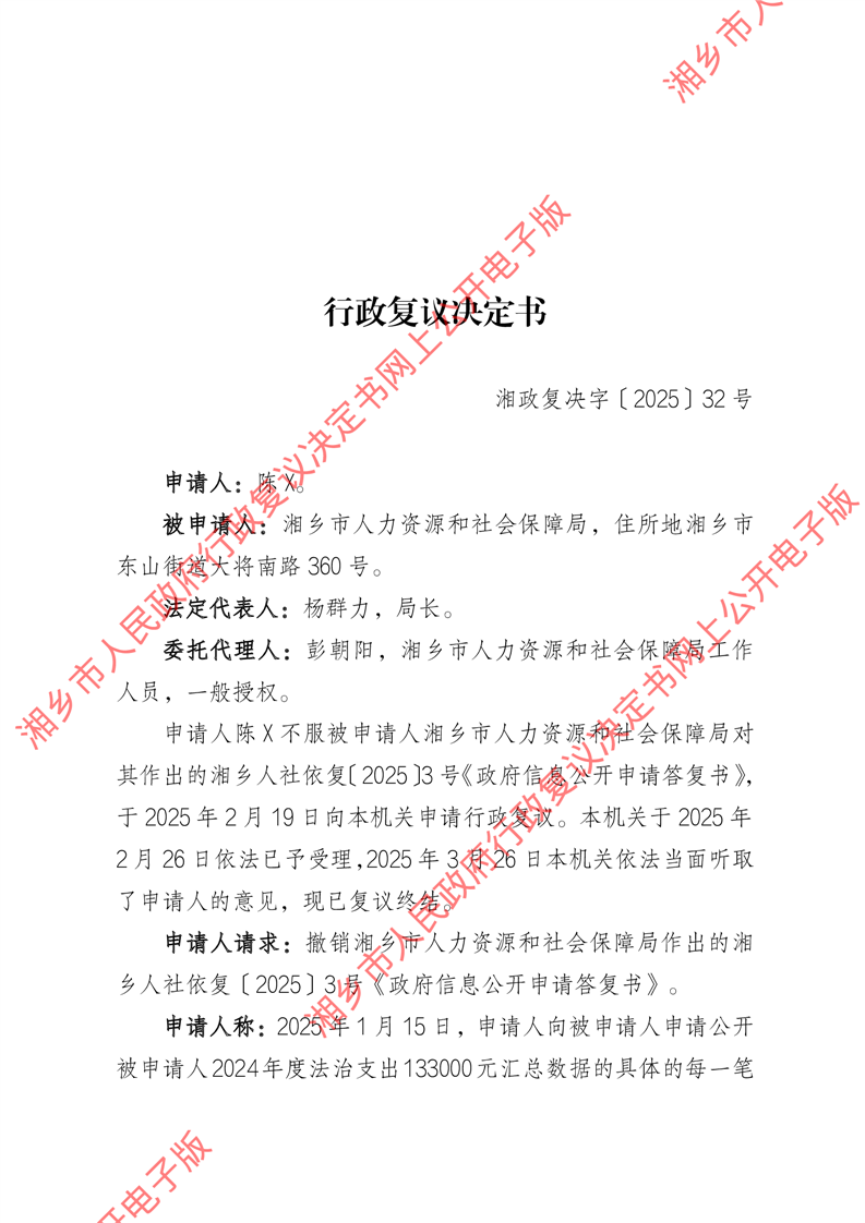 湘政復(fù)決字〔2025〕32號《行政復(fù)議決定書》