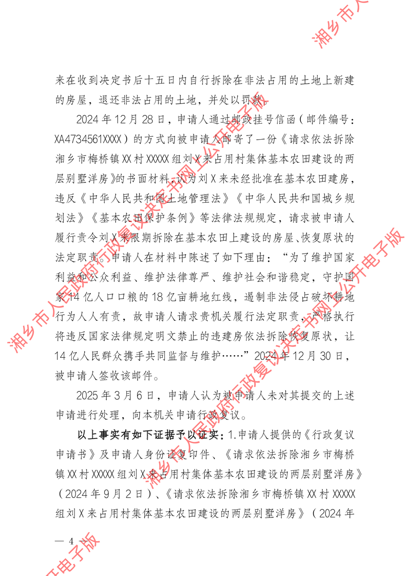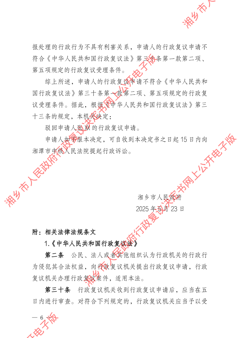 湘政復駁字〔2025〕9號《駁回行政復議申請決定書》