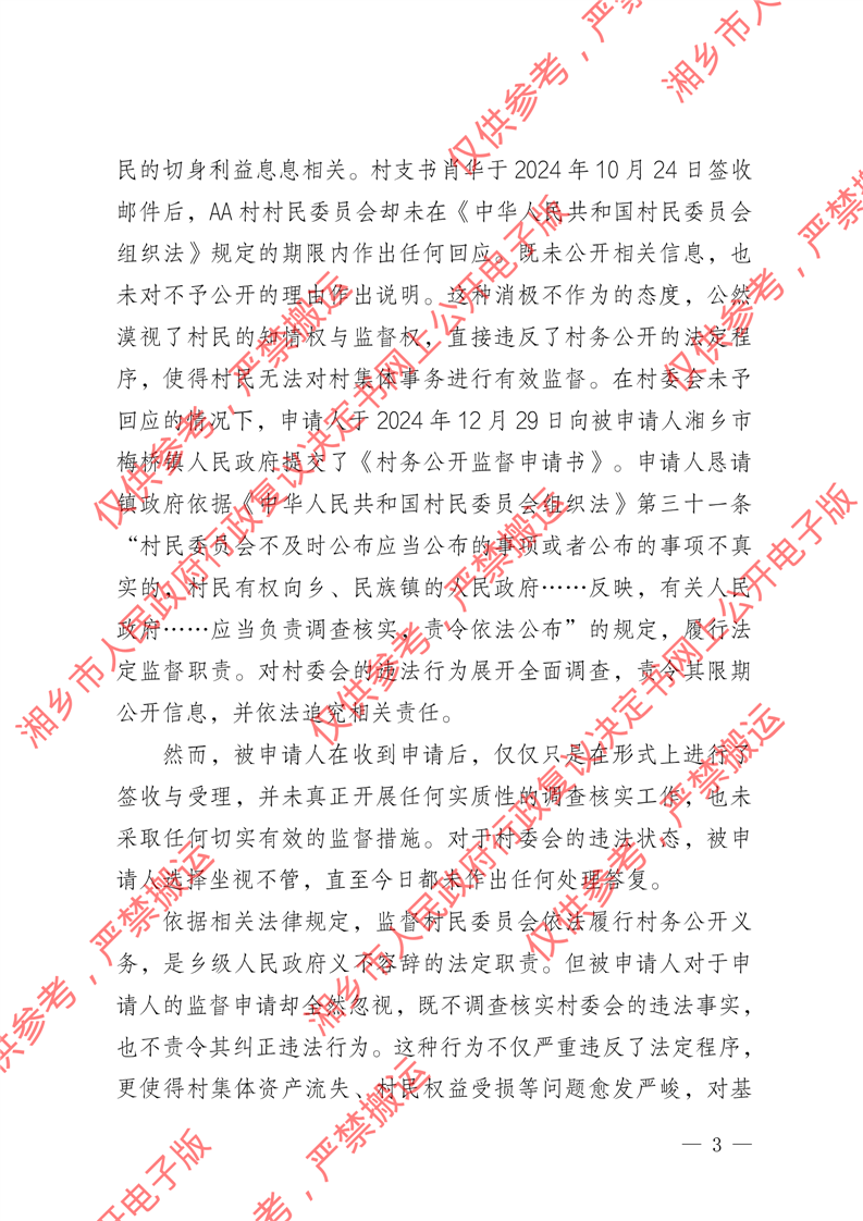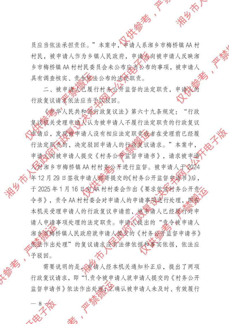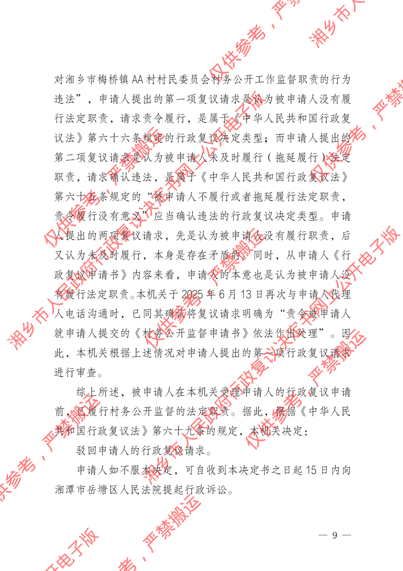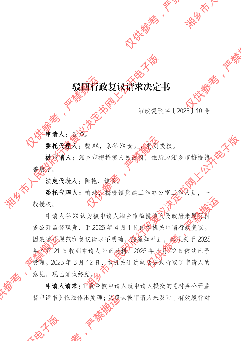 湘政復駁字〔2025〕10號《駁回行政復議請求決定書》