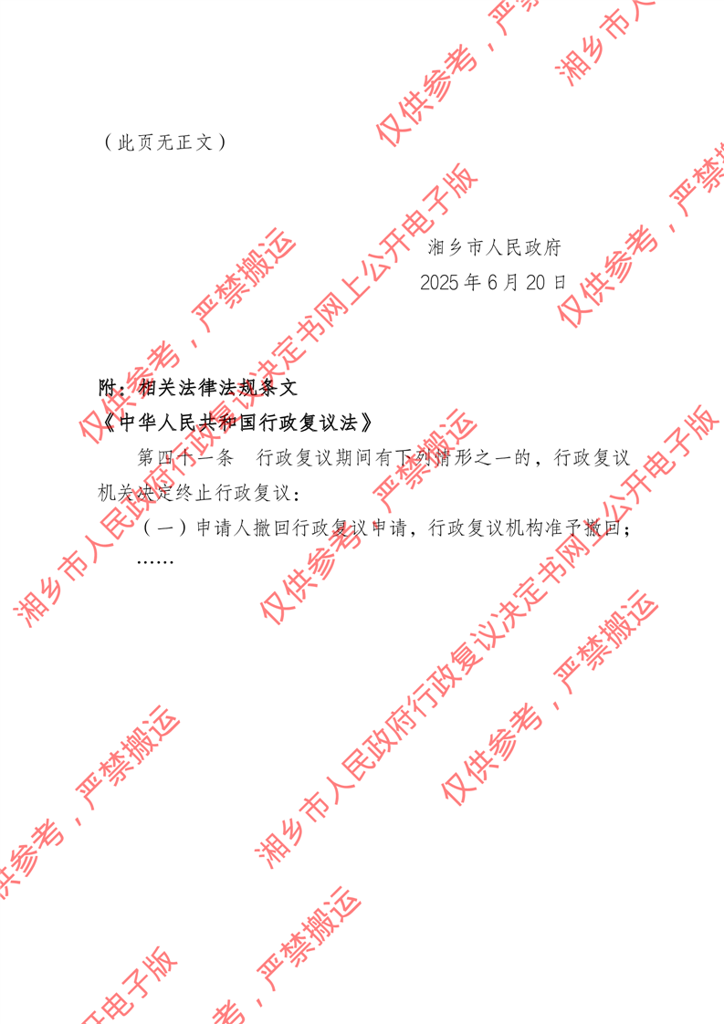 湘政復終字〔2025〕35號《行政復議終止決定書》