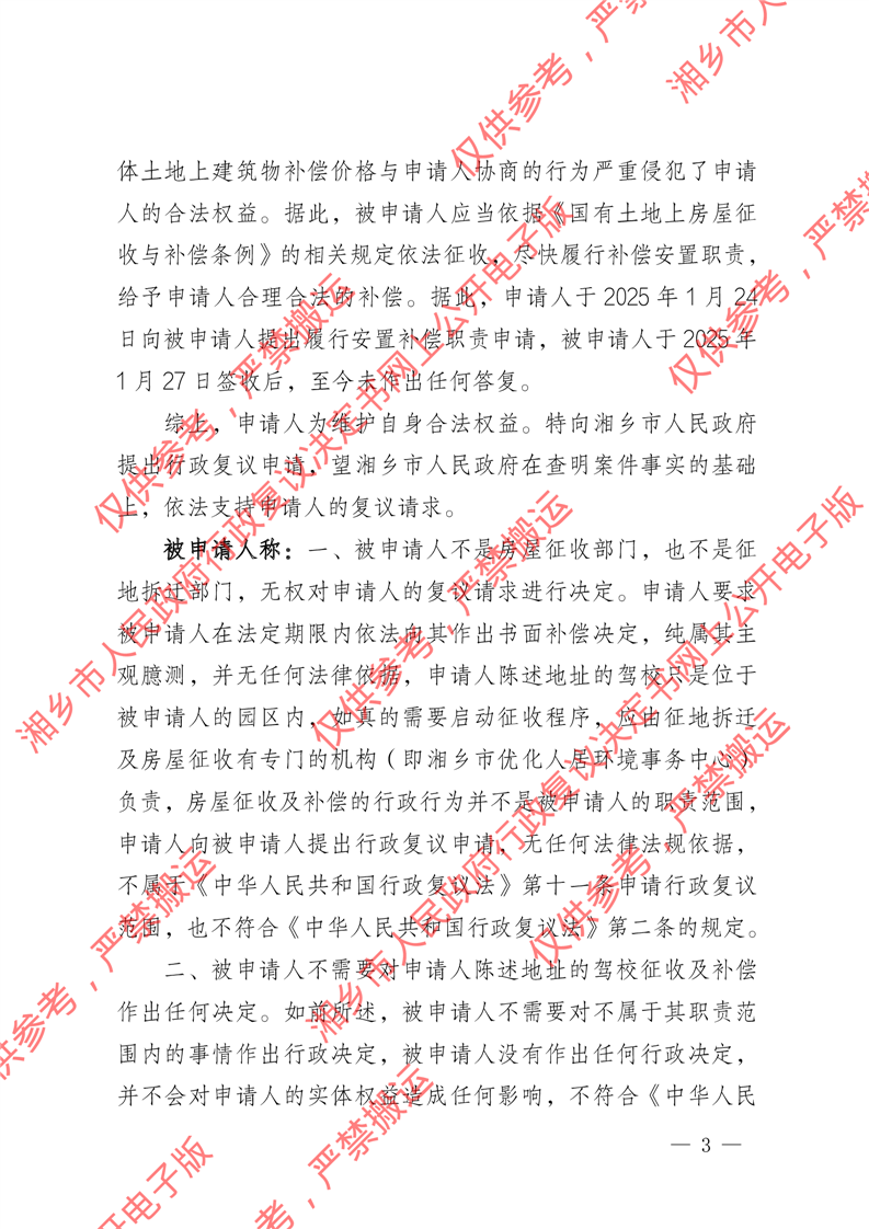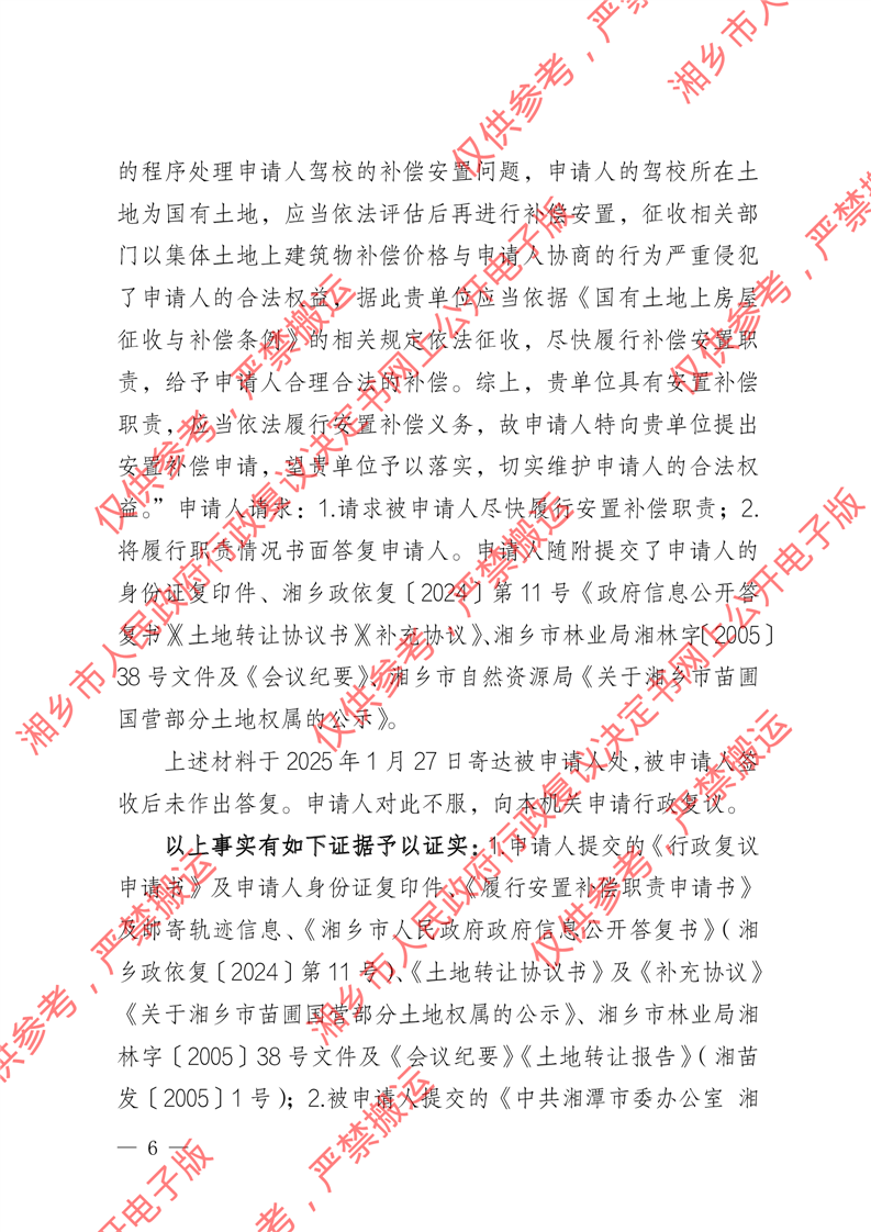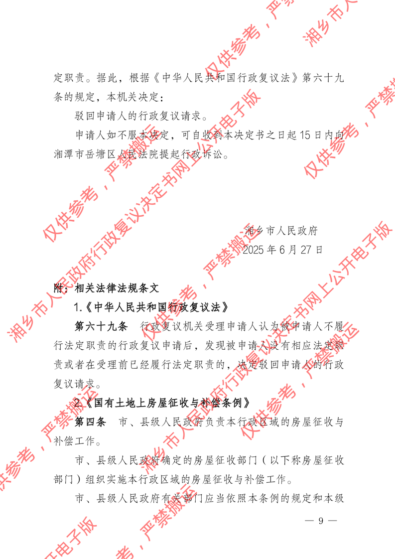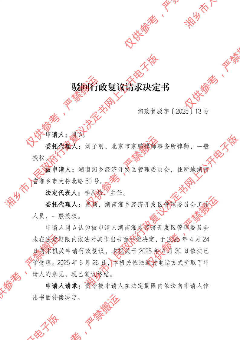 湘政復駁字〔2025〕13號《駁回行政復議請求決定書》