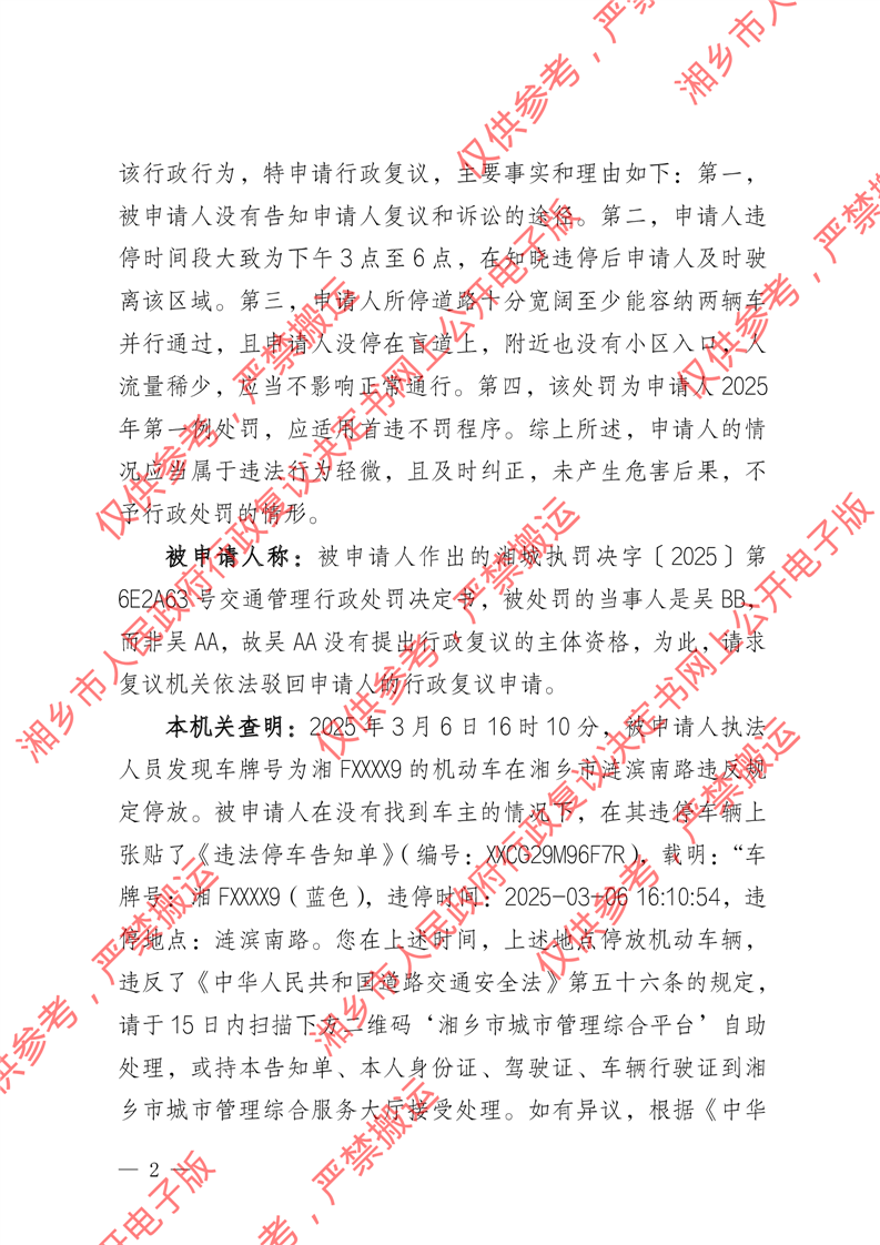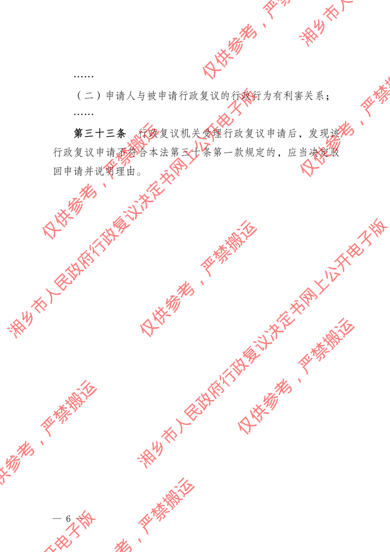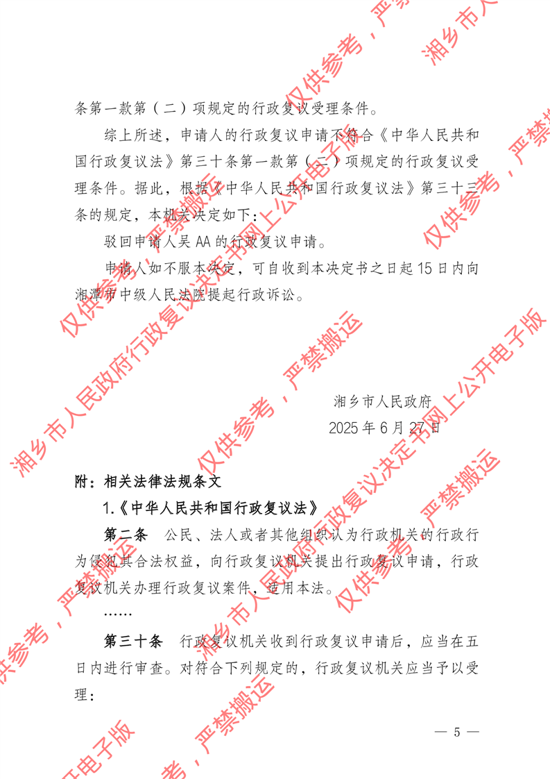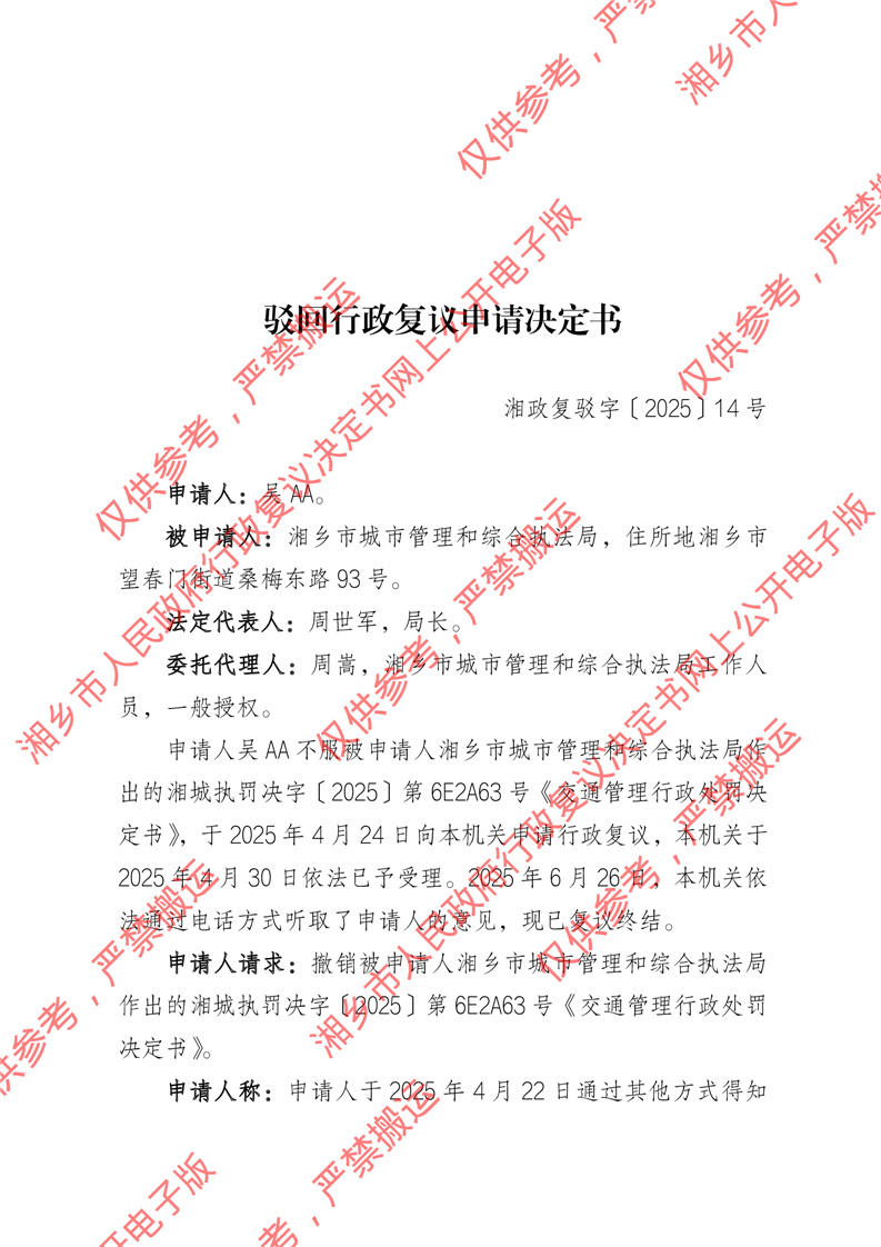 湘政復(fù)駁字〔2025〕14號《駁回行政復(fù)議申請決定書》