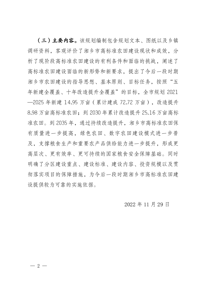 關(guān)于《湘鄉(xiāng)市高標(biāo)準(zhǔn)農(nóng)田建設(shè)規(guī)劃 (2021-2030年)》的草案解讀
