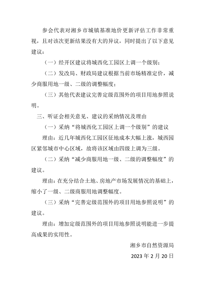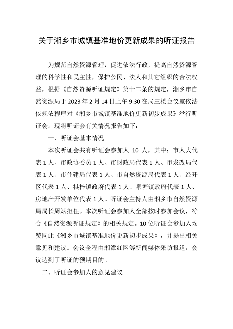 關(guān)于湘鄉(xiāng)市城鎮(zhèn)基準地價更新成果的聽證報告