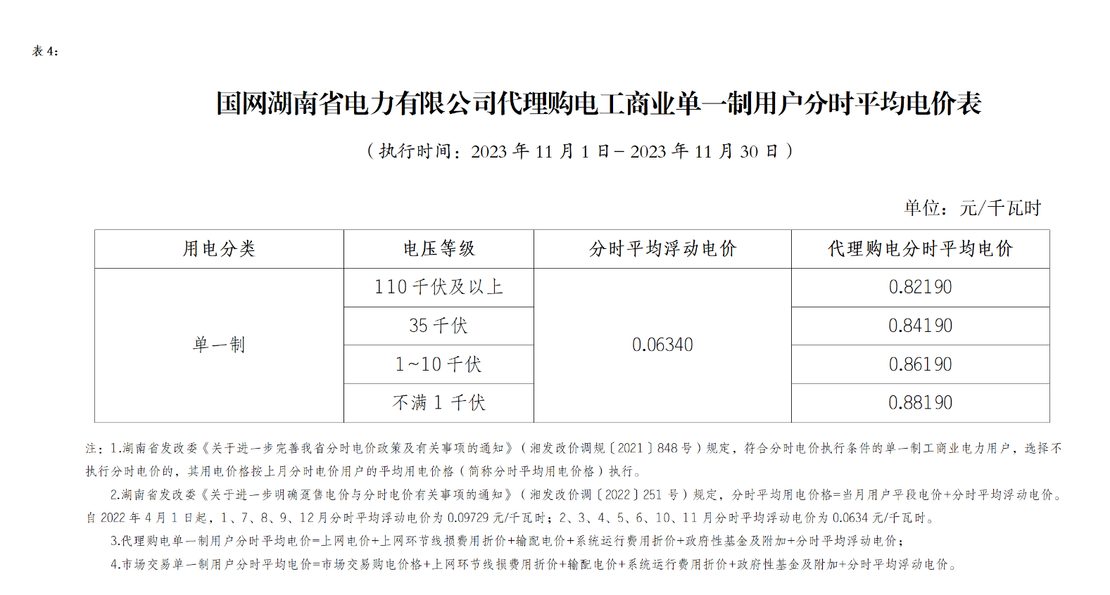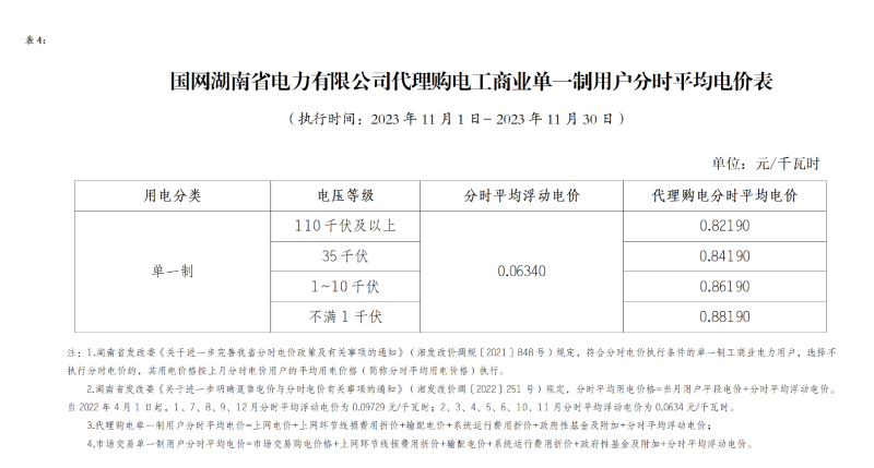 2023年11月代理購電工商業單一制用戶分時平均電價表