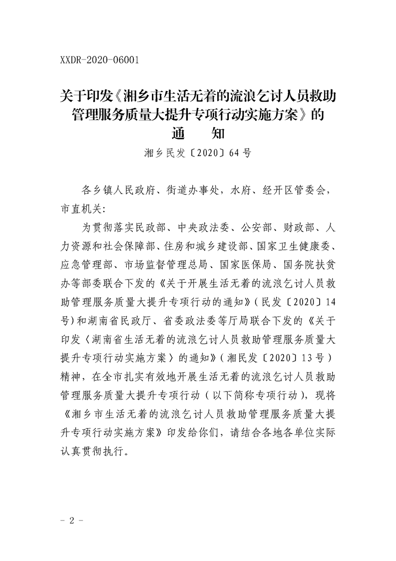 文號:湘鄉民發〔2020〕64 號