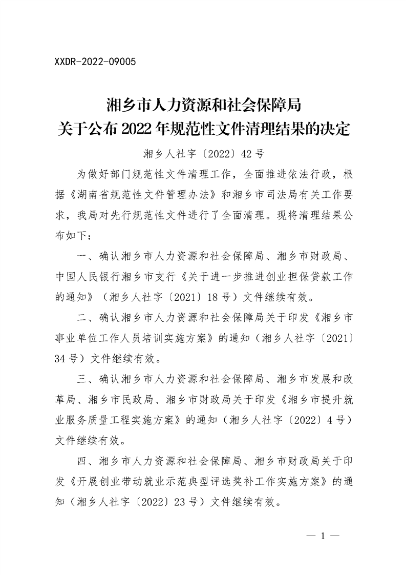 文號(hào):湘鄉(xiāng)人社字〔2022〕42 號(hào)