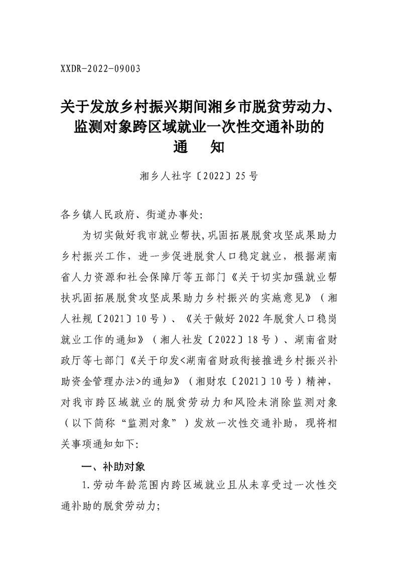 文號:湘鄉(xiāng)人社字〔2022〕25 號