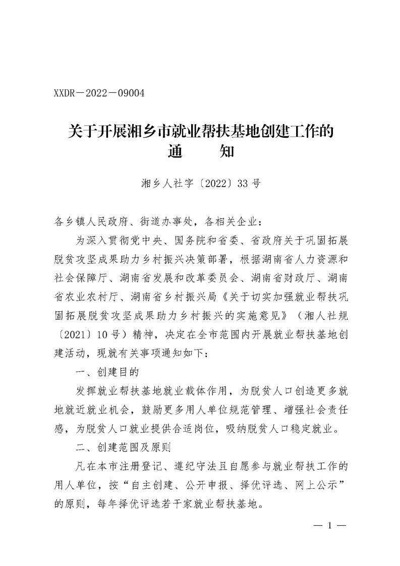 文號(hào):湘鄉(xiāng)人社字〔2022〕33 號(hào)