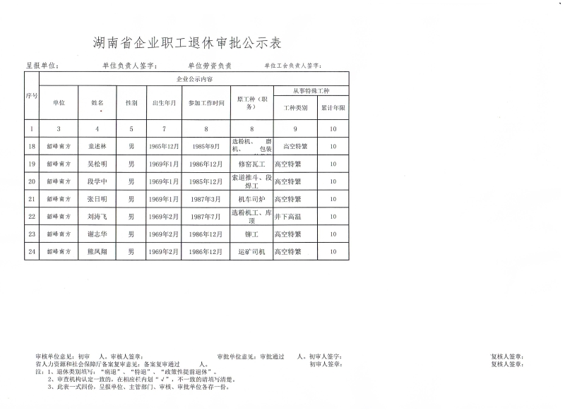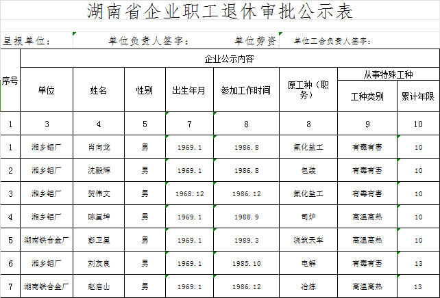 湘鄉(xiāng)市2024年特殊工種提前退休擬通過人員公示