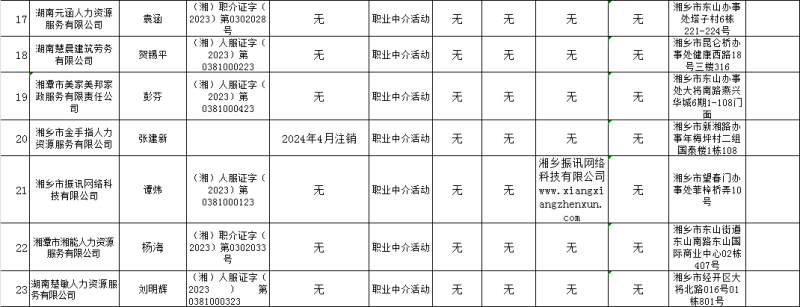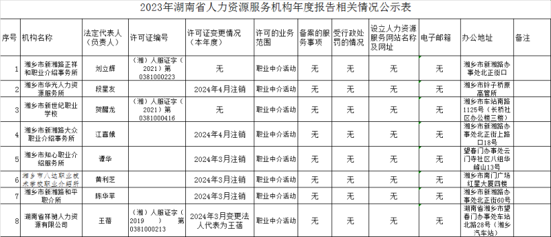 湘鄉市經營性人力資源服務機構2023年年度報告相關情況公示