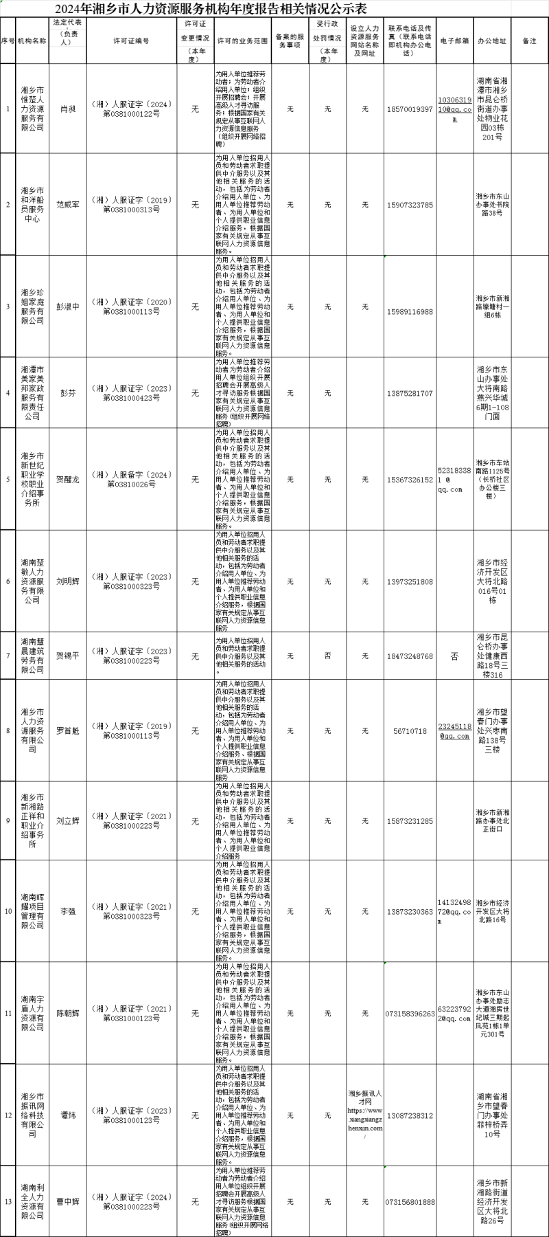 2024年湘鄉市人力資源服務機構年度報告相關情況公示