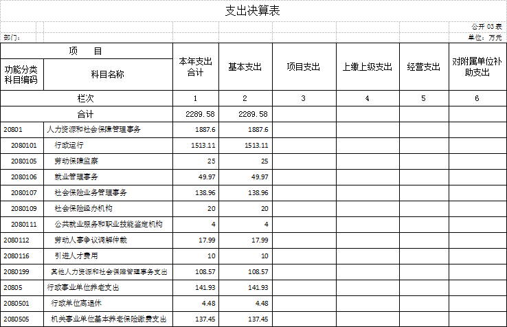 2021年度財政撥款基本支出2289.58萬元,其中:人員經費1838.54萬元,占基本支出的80.30%,主要包括基本工資、津貼補貼、獎金、伙食補助費及三支一扶人員工資補助;公用經費451.04萬元,占基本支出的19.7%,主要包括辦公費、印刷費、咨詢費、手續費及勞動保障監察、仲裁調解、社會保險經辦機構業務專項支出等。