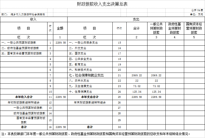注:1.本表反映部門本年度的總收支和年末結轉結余情況。