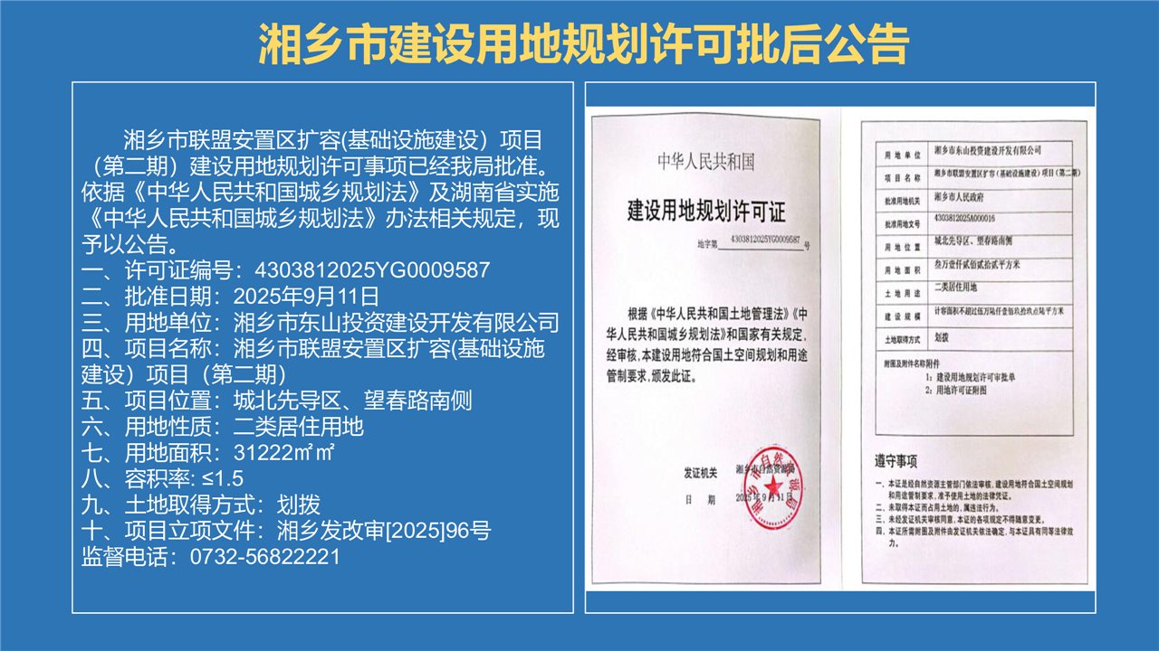 湘鄉(xiāng)市建設用地規(guī)劃許可批后公示(湘鄉(xiāng)市聯(lián)盟安置區(qū)擴容(基礎設施建設)項目(第二期))