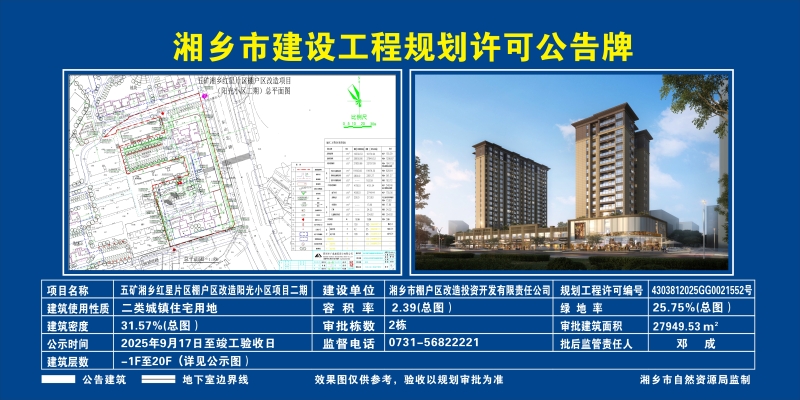 湘鄉市建設工程規劃許可公告牌(五礦湘鄉紅星片區棚戶區改造陽光小區項目二期)