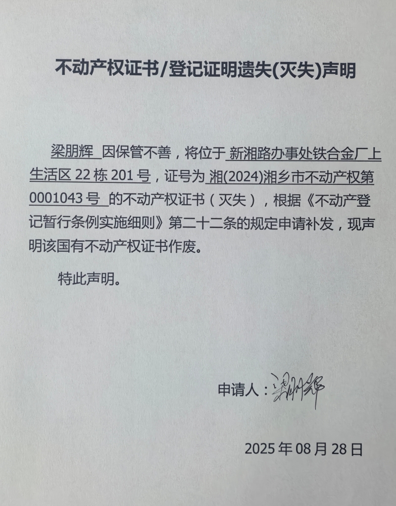 索引號:4303000006/2025-1389413 發布機構:不動產信息公開 發布目錄:不動產登記公告