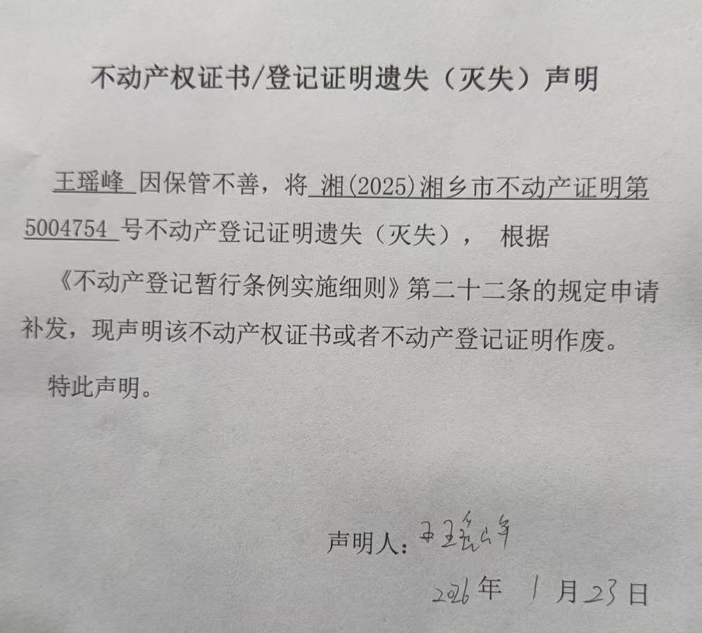 索引號:4303000006/2026-1415168 發布機構:不動產信息公開 發布目錄:不動產登記公告