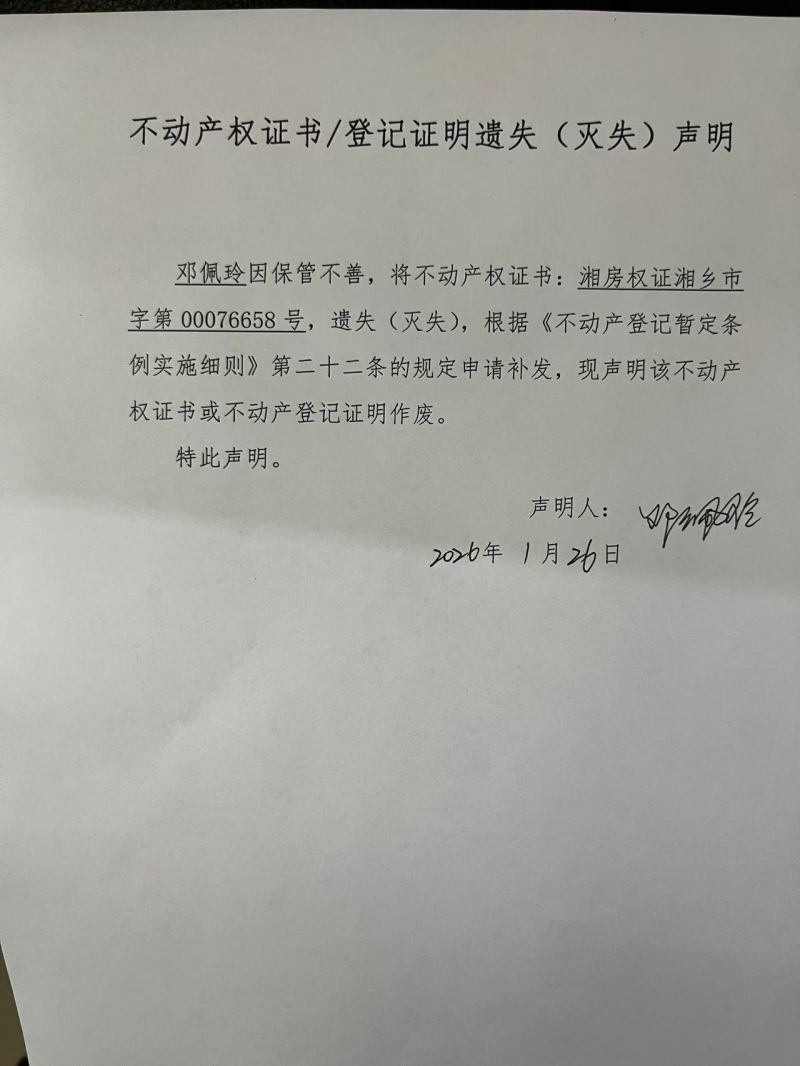 不動(dòng)產(chǎn)遺失公告(鄧佩玲)