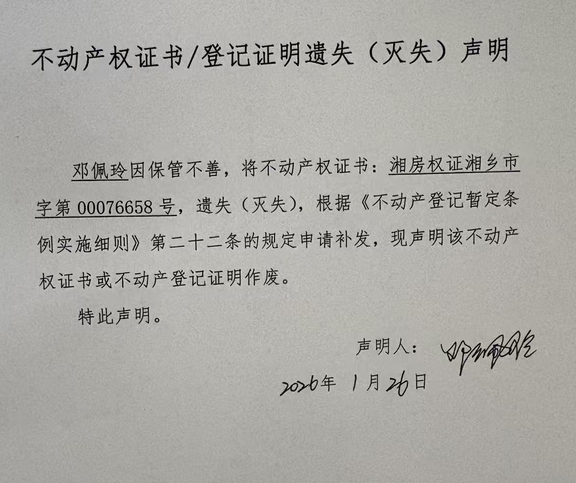 鄧佩玲(不動(dòng)產(chǎn)遺失聲明)