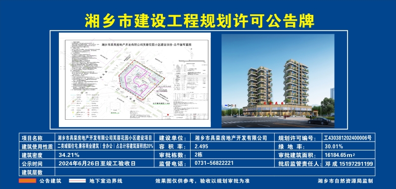 湘鄉(xiāng)市具榮房地產(chǎn)開發(fā)有限公司芙蓉花園小區(qū)建設(shè)項目建設(shè)工程規(guī)劃許可公告