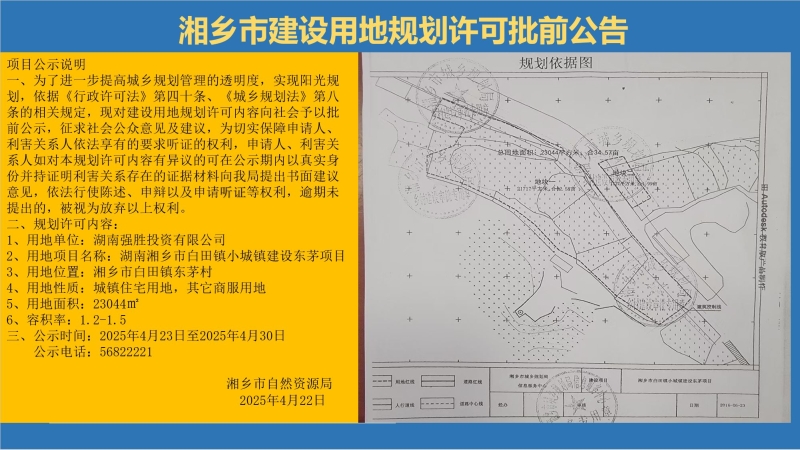 湖南湘鄉市白田鎮小城鎮建設東茅項目規劃許可批前公示