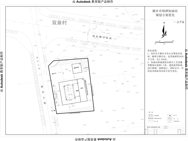 2、加油站新建建筑及相關工藝設施等整體往南移1.5米,建筑離界距離進行微調;道路退讓、消防安全、經濟技術指標等內容不發生變化。