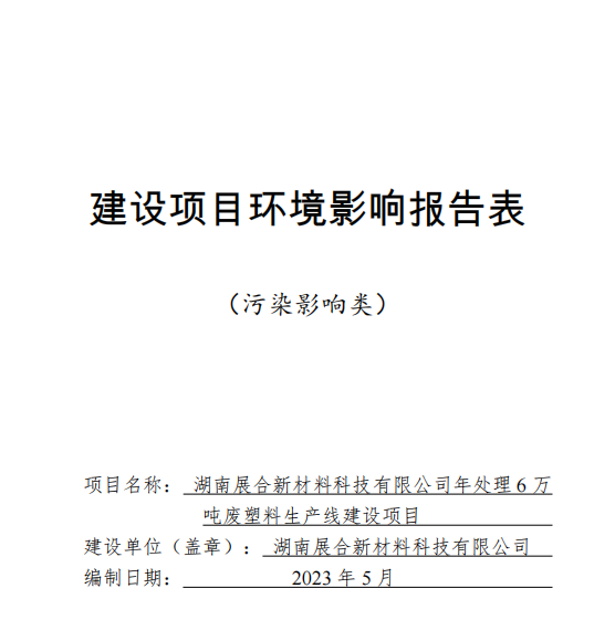 湖南展合新材料科技有限公司年處理 6 萬噸廢塑料生產線建設項目建設項目環境影響報告表公示
