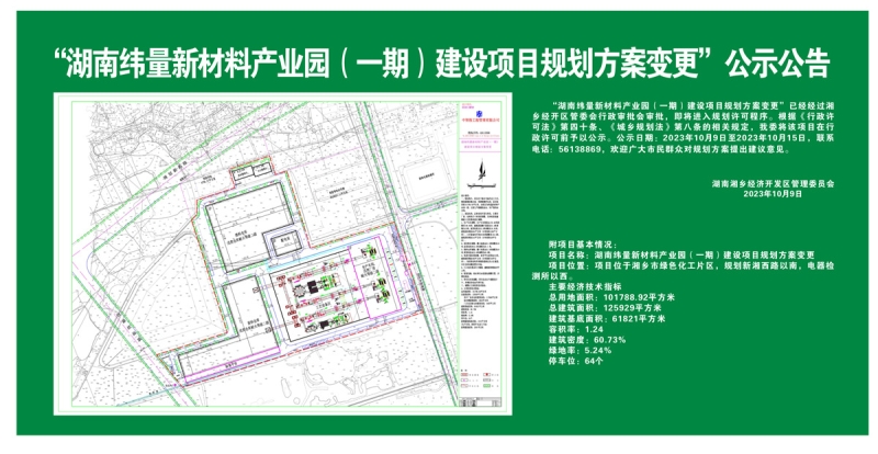 “湖南緯量新材料產業園(一期)建設項目規劃方案變更”公示公告