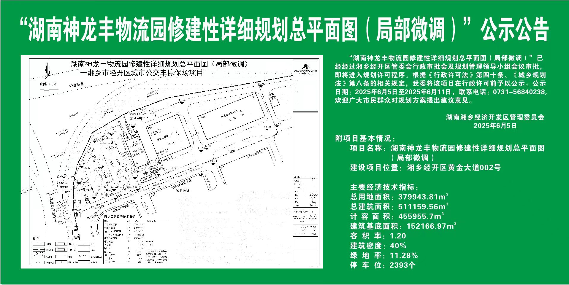 “湖南神龍豐物流園修建性詳細(xì)規(guī)劃總平面圖 (局部微調(diào))”公示公告