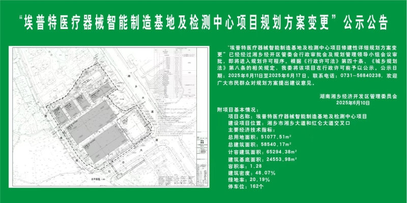 “埃普特醫療器械智能制造基地及檢測中心項目規劃方案變更”公示公告