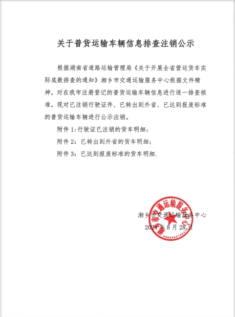 關(guān)于普貨運(yùn)輸車(chē)輛信息排查注銷(xiāo)公示